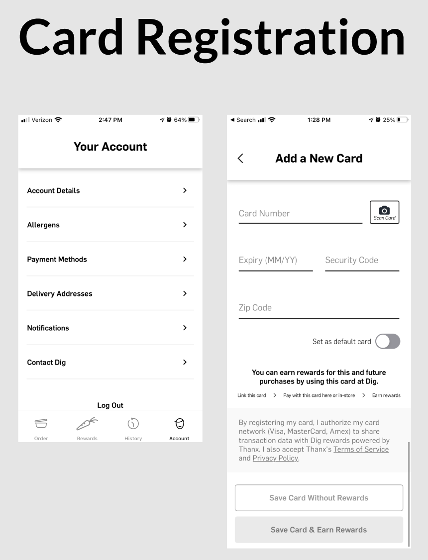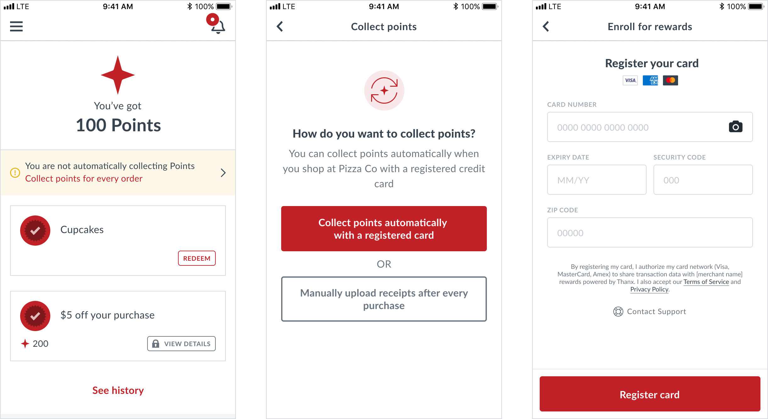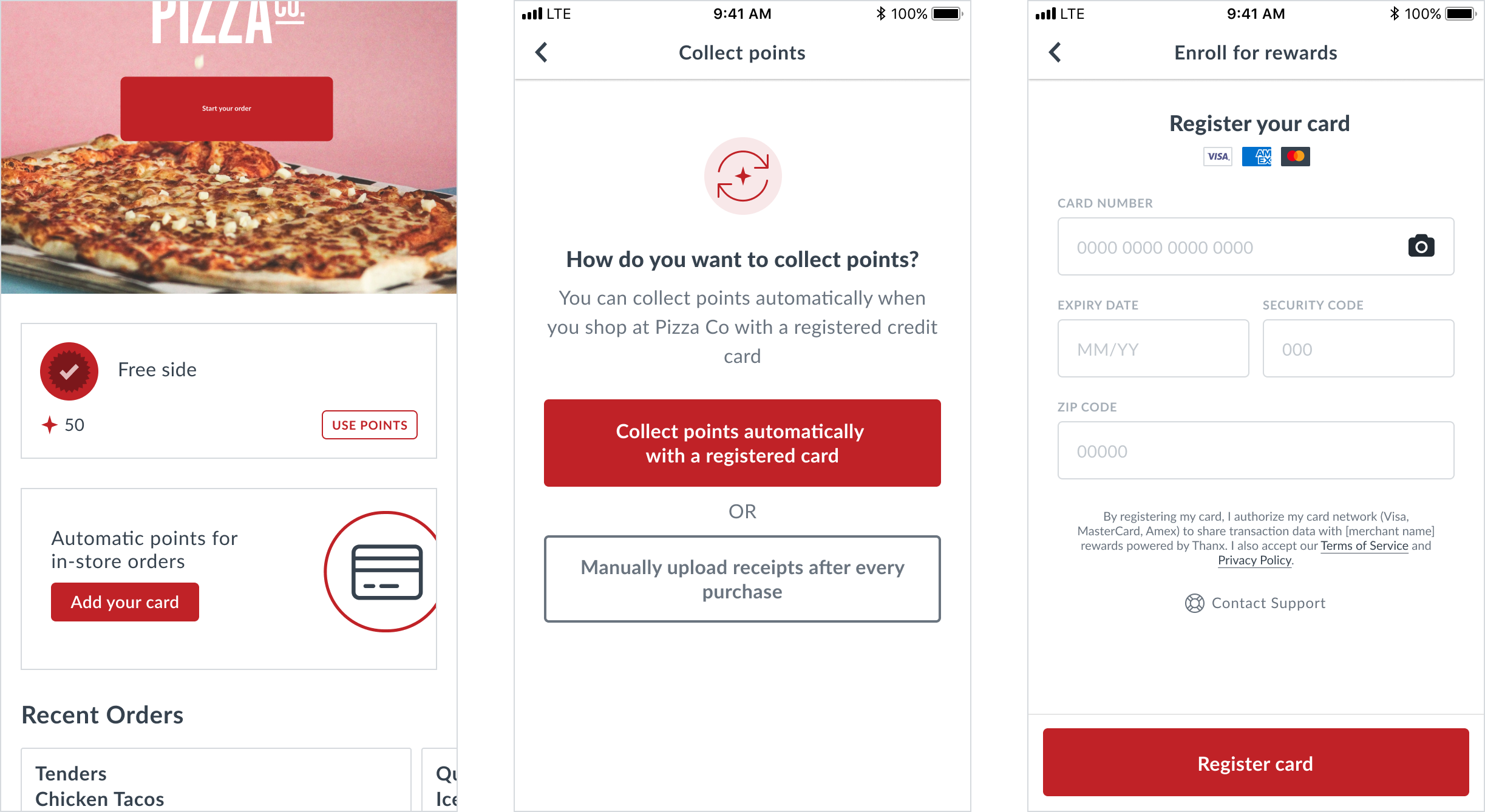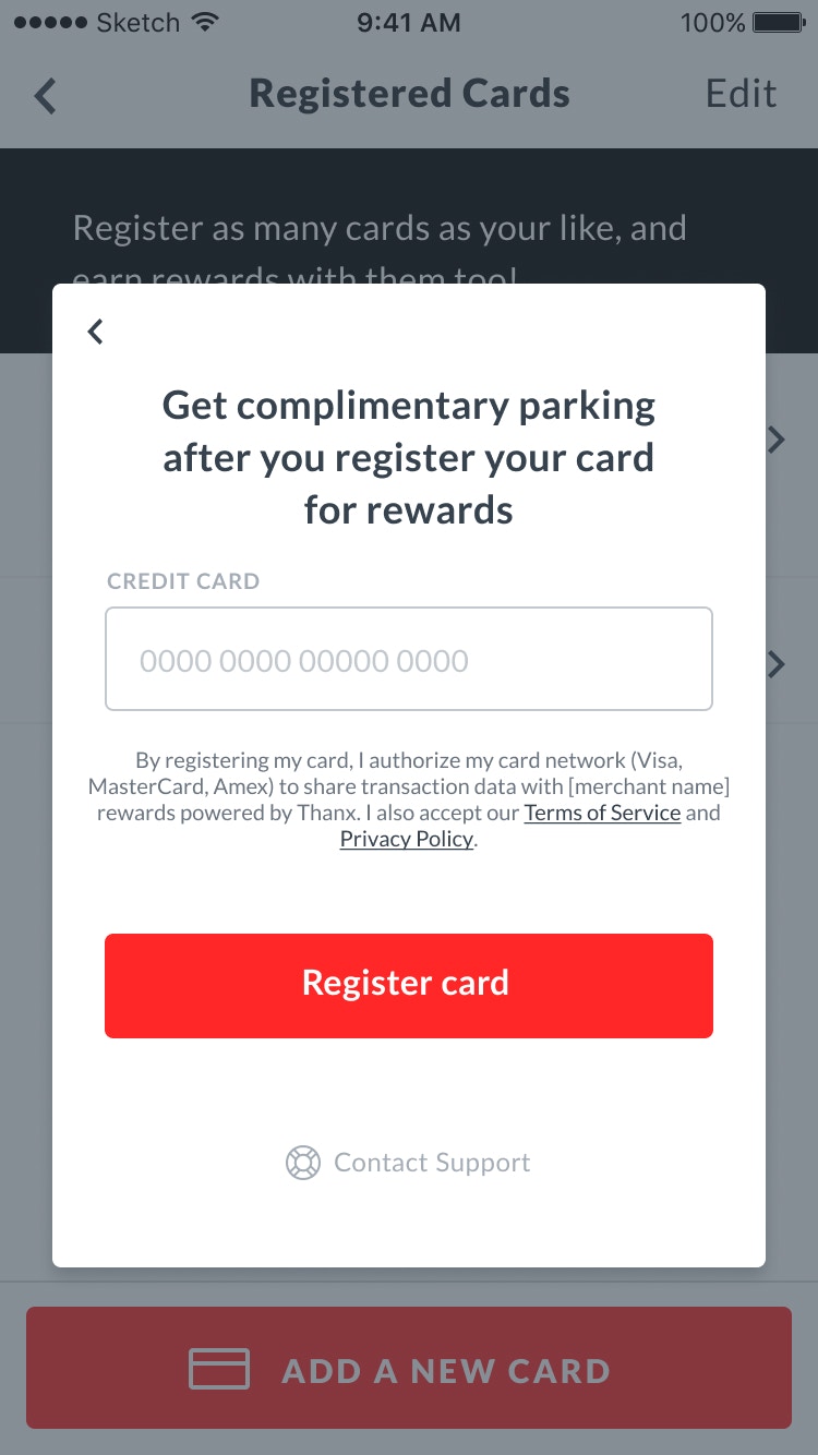 rewards powered by Thanx. I also accept our Terms of Service and Privacy Policy.Loyalty app add payment method