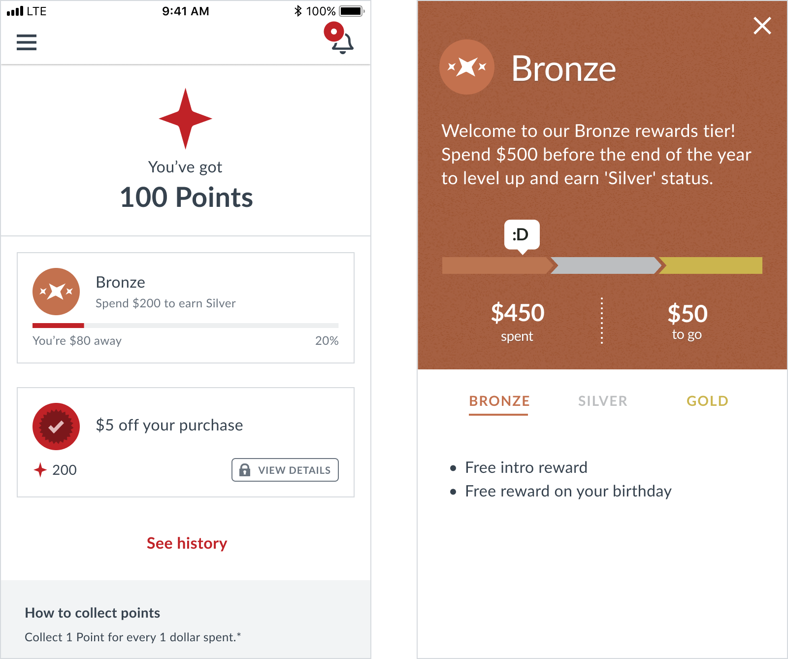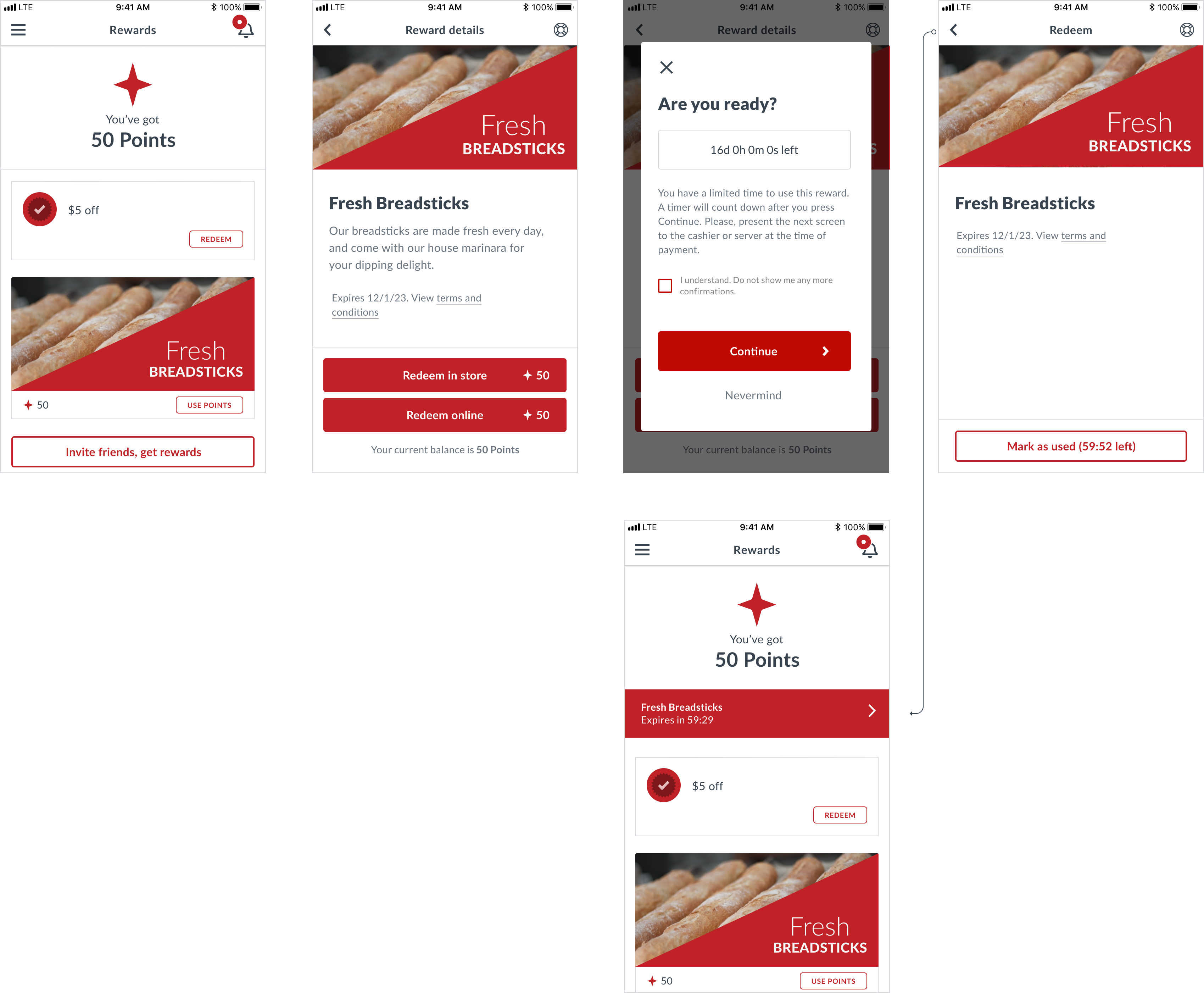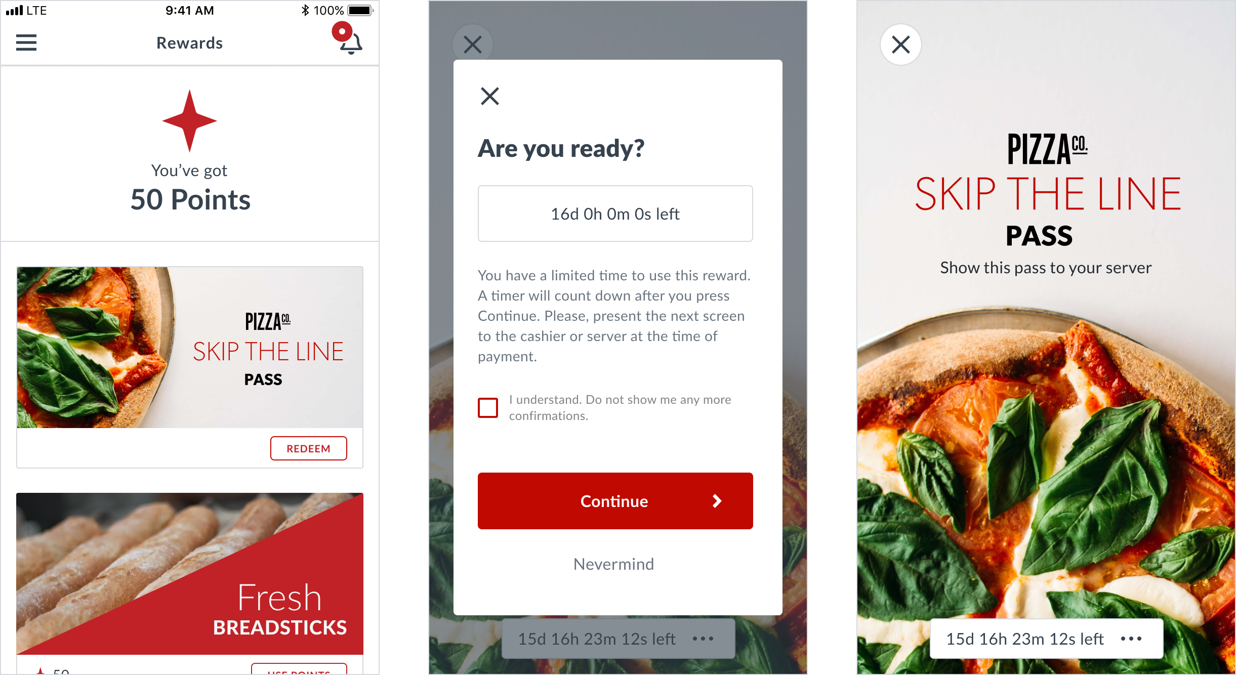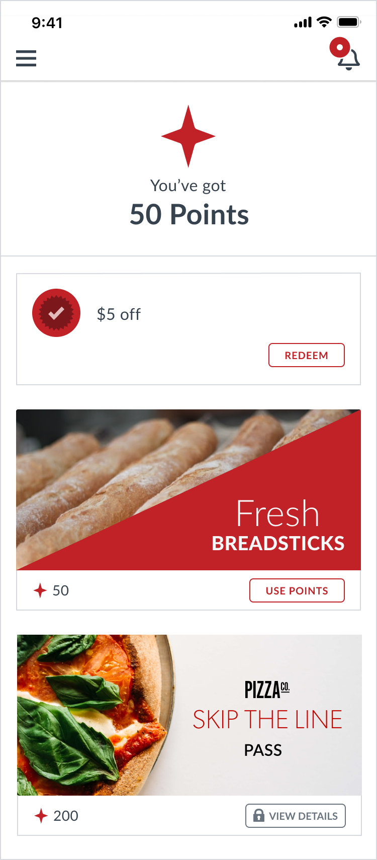 - If a customer has earned multiples of the same reward, you can stack them (think a horizontal carousel) rather than a vertical list.