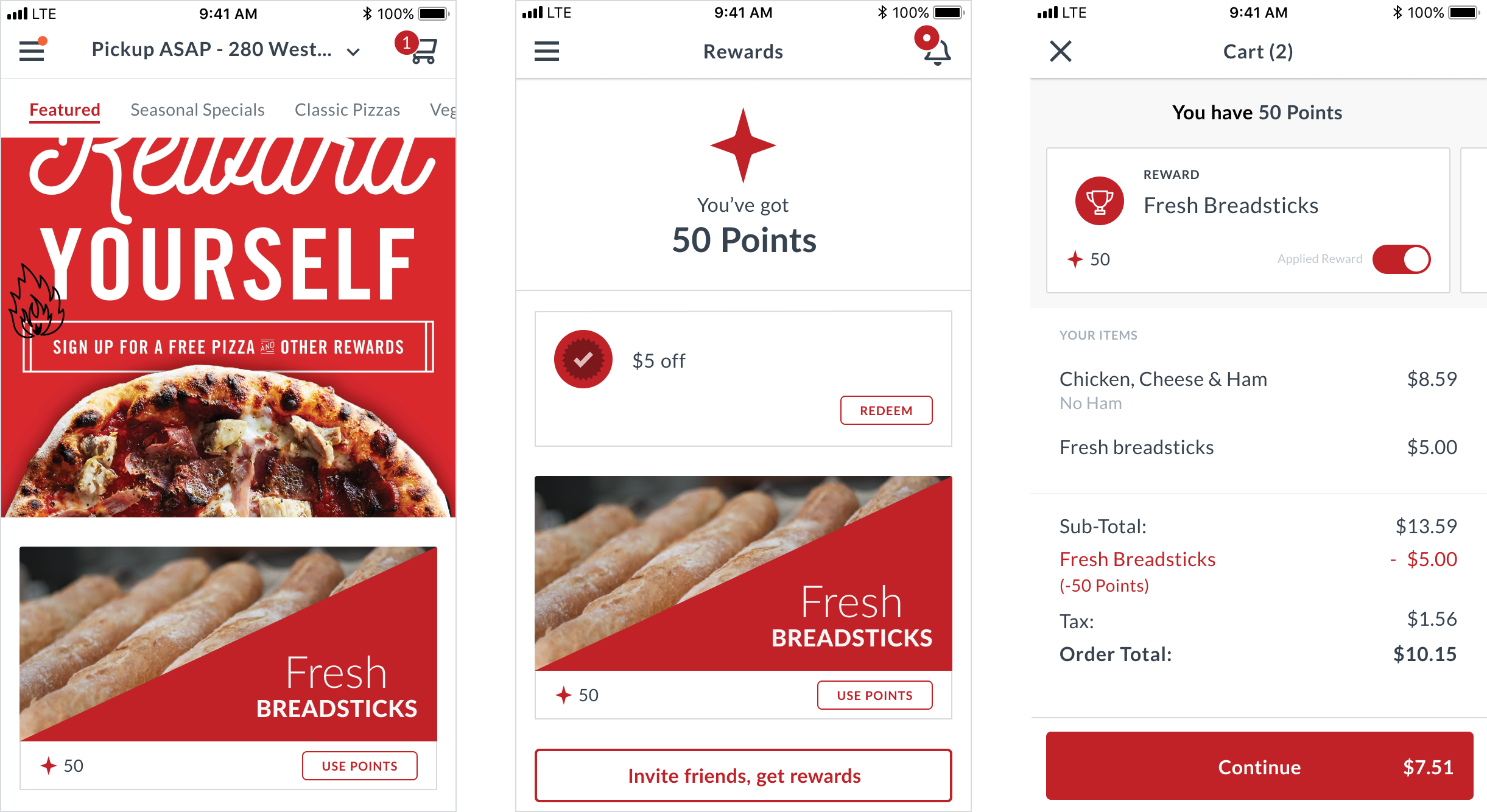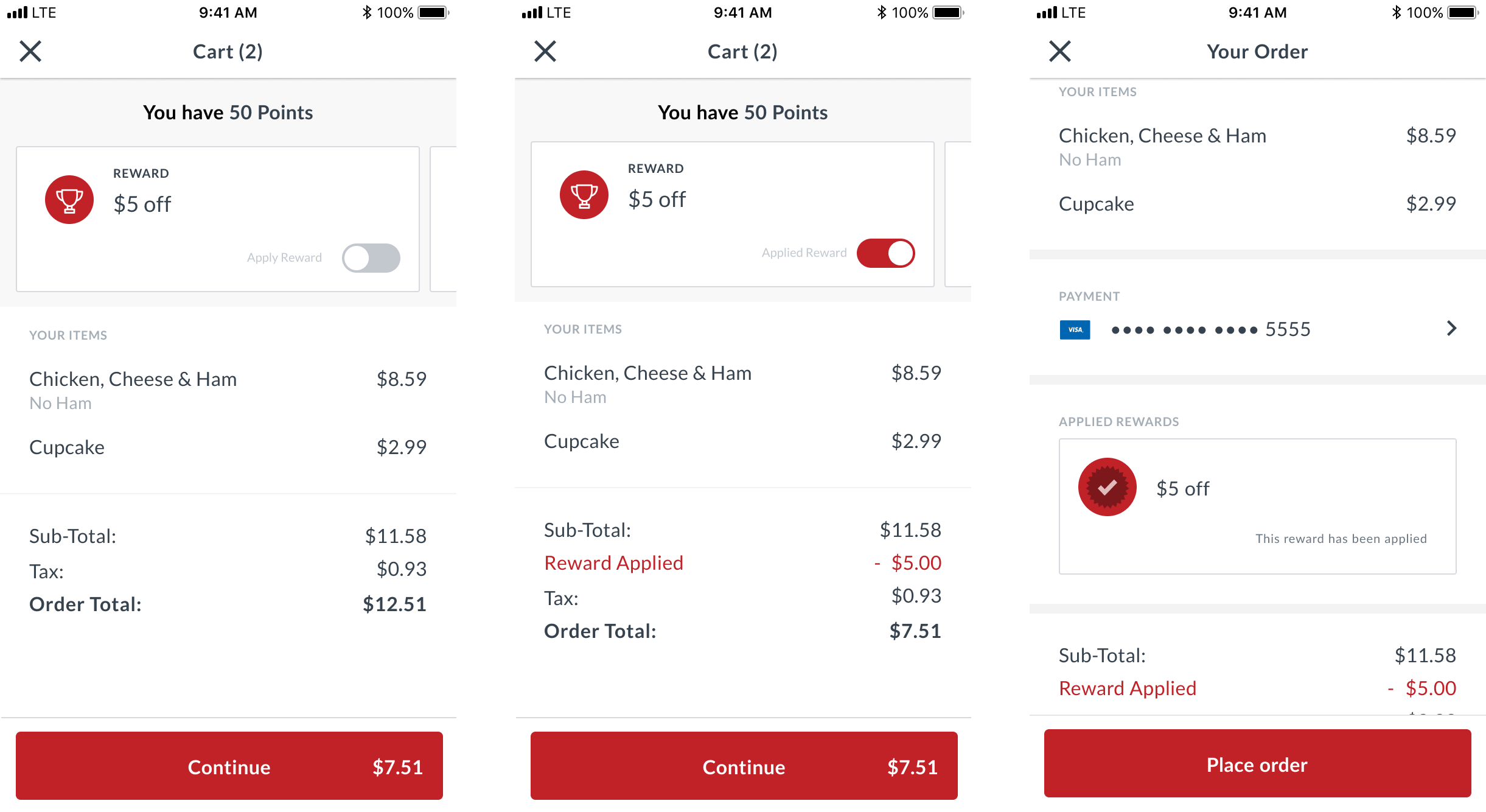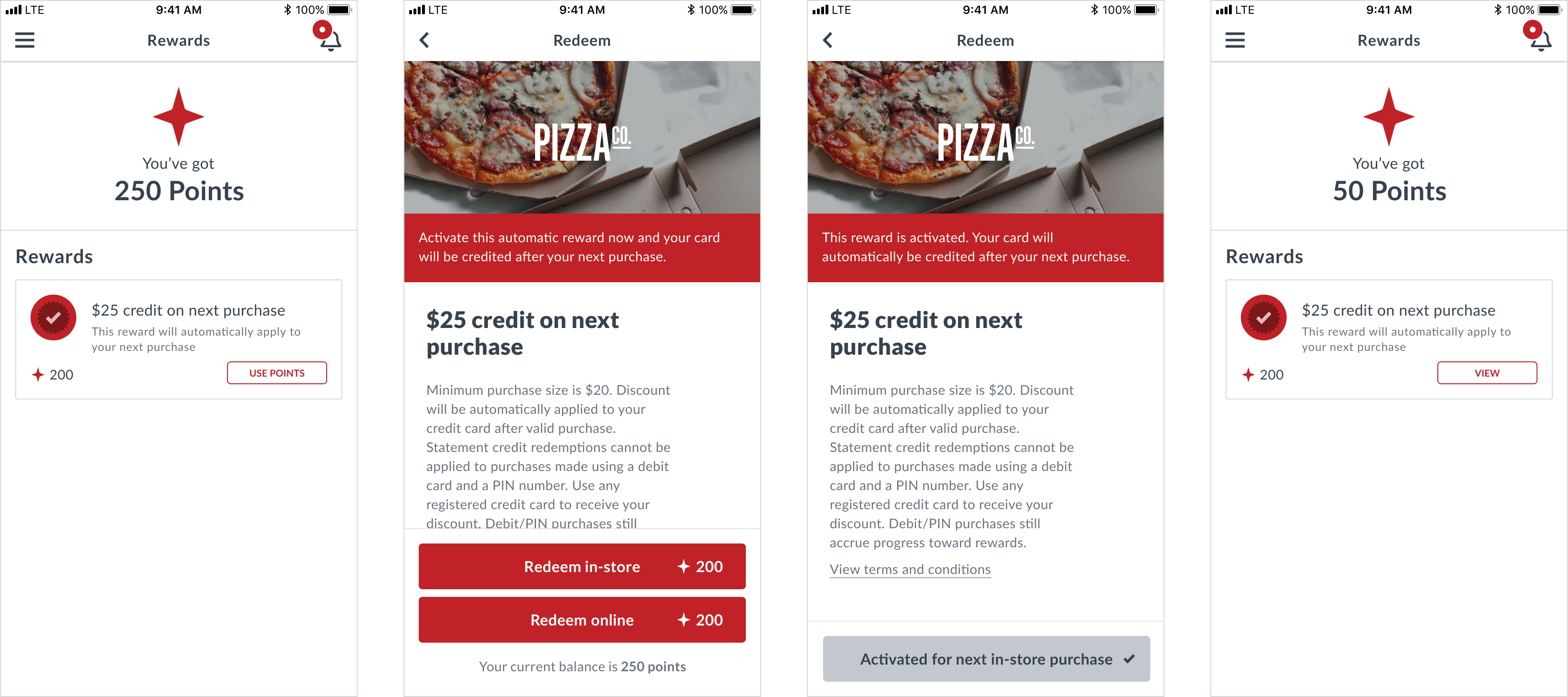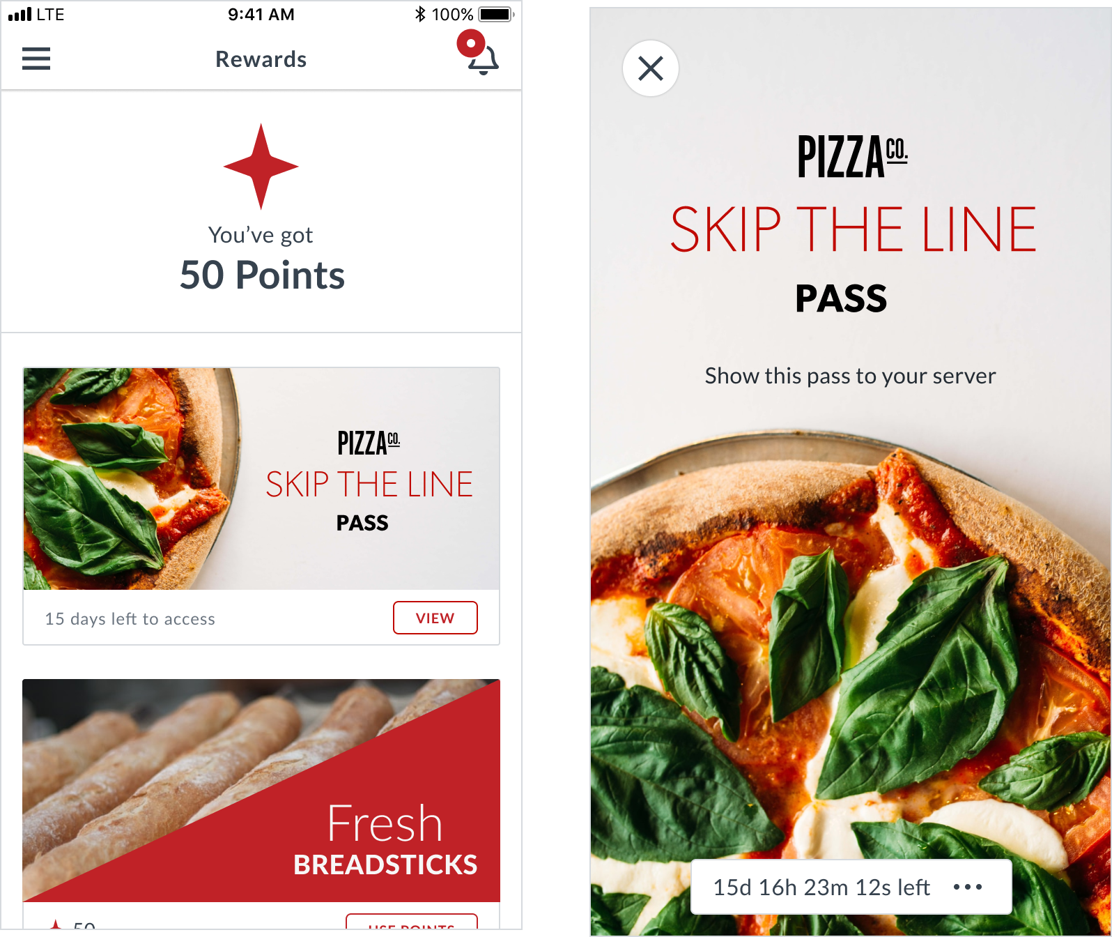 - If a customer has earned multiples of the same reward, you can stack them (think a horizontal carousel) rather than a vertical list.